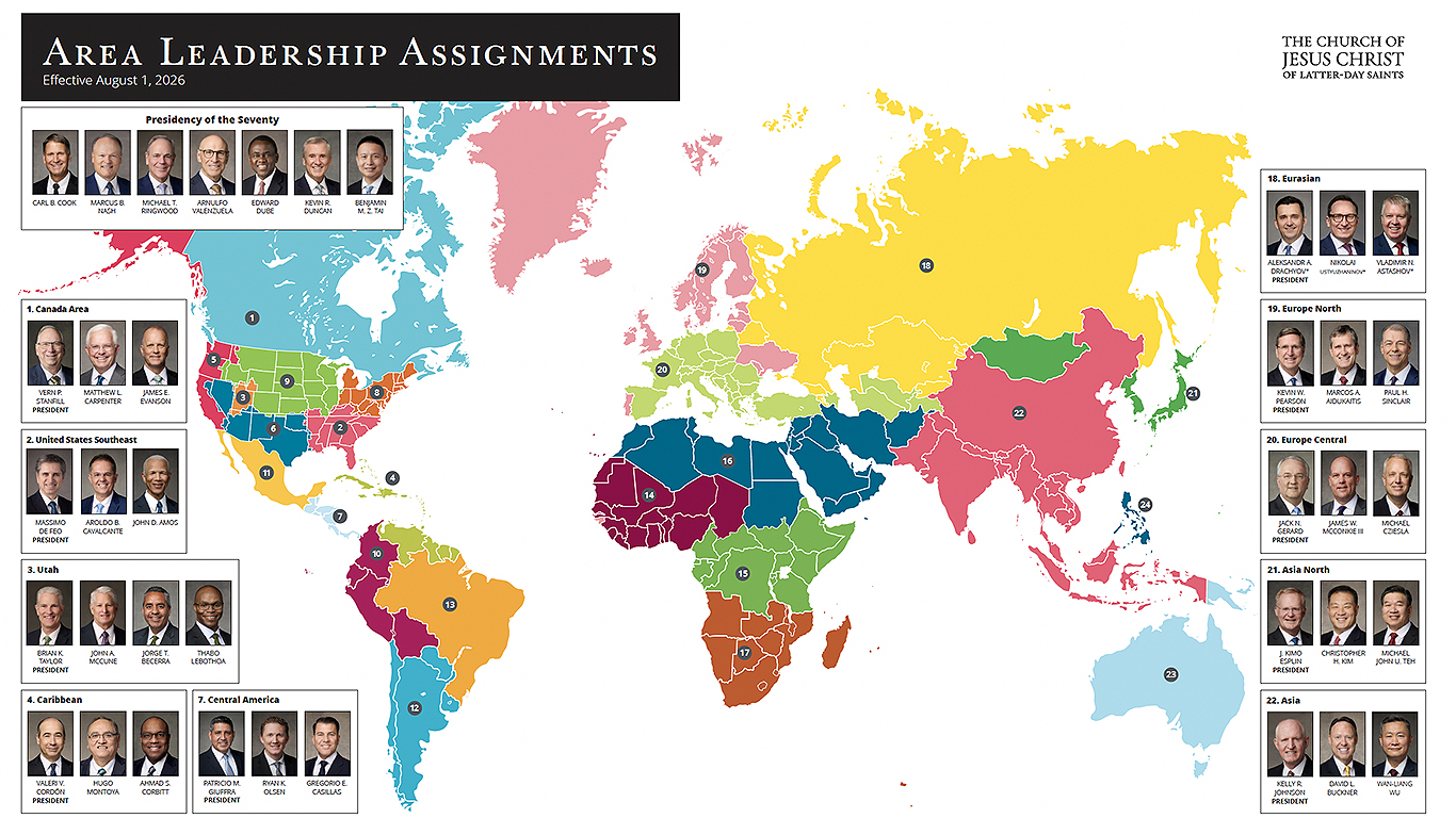 A Primeira Presidência de A Igreja de Jesus Cristo dos Santos dos Últimos Dias anunciou as designações de liderança de área para 2026–2027, bem como adaptações que intensificam o apoio às presidências de área para melhor atender às necessidades de uma Igreja em crescimento. Essas mudanças entrarão em vigor a partir de 1º de agosto de 2026.