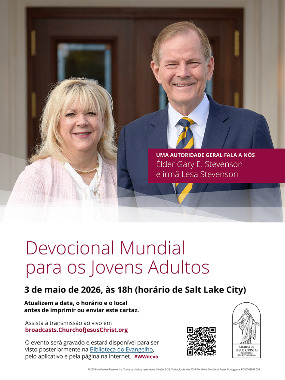 Na América do Norte ou na América do Sul, verifique se haverá um evento local para se reunir e assistir à transmissão ao vivo no domingo, dia 3 de maio de 2026, às 18h Horário de Salt Lake City.