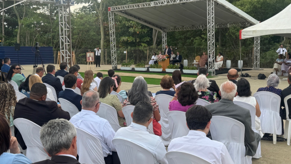 Participaram da reunião Maria Aparecida Severino de Sousa, do Distrito Mamanguape Brasil, que ofereceu a oração de abertura, e os oradores Samuel Ferreira Vasconcelos, da Estaca Campina Grande Brasil Liberdade, e Miriam de Sá Ferreira, da Estaca João Pessoa Brasil Torre. Um coro de membros da região apresentou o hino “A Ti Oramos, Pai Celeste”, preparando espiritualmente os presentes para a mensagem e a oração dedicatória.
